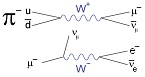 is a purely leptonic decay into a muon (μ−) and a muon antineutrino (ṽμ).