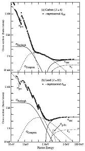 The passage of particles through matter, page 22 shows Photoelectric effect, Rayleigh scattering, Compton scattering, and pair production in a Nuclear or Electron field.